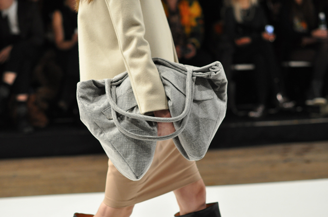 For those who follow FFG on instagram, you will have seen we posted a little bit of a teaser today regarding the aforementioned "spotted." Alicia Vikander, actress from Anna Karenina and The Royal Affair, made her way onto the front row for the Dagmar show at Stockholm Fashion Week. As I was admiring her beautiful Dagmar coat, she turned the other direction for a photographer and my eyes were immediately drawn to the leather tote swinging from her arm.
